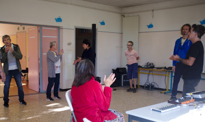Les ateliers de création musicale par la compagnie EBC-223, dans le cadre de Proyecto Traso, ont commencé avec un groupe des foyers d'hébergements du Grand Réal. Des expérimentations de musique électronique avec des objets sonores créés de toute pièce, du faire ensemble musical et collectif. Ils seront en représentation ce samedi 12 octobre à 20h30 dans le cadre de nos programmations Détours de cirque sous le chapiteau de La Bourguette. Ne les ratez pas !